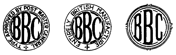 The letters 'BBC' signified that the equipment was made by a member firm of the British Broadcasting Company and was subject to a royalty payment, although the stamp was not a guarantee of the quality of the workmanship.