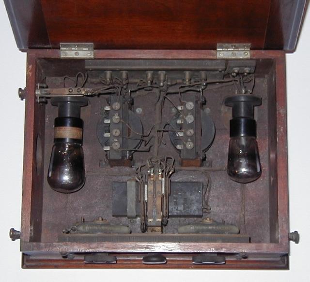 An interior view of the amplifier is shown below. The two valves shown date from c. 1928.