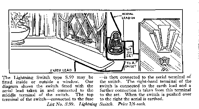 Recommended connection of the S.99 Lightning Switch Reproduced from the Bulgin publication 'Bulgin Radio Service Manual' c. 1936 |