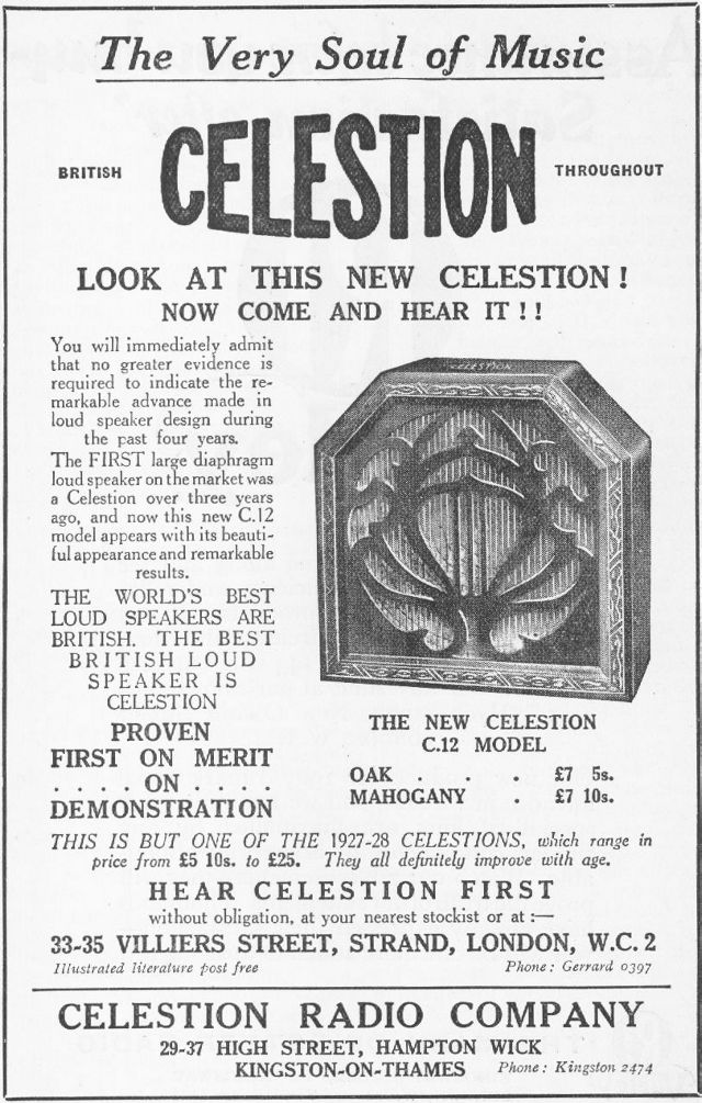 A contemporary advertisement for this loudspeaker is shown below.