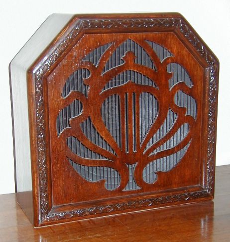 This is the Celestion C12 loudspeaker made by the Celestion Radio Company, Kingston-Upon-Thames, Surrey, England in 1927. This 'reed' type loudspeaker is well made and is signed and dated on the inside, presumably by the person who made it. The paper cone is stiffened with a spiral of wire (visible in the photograph above) and there is a rotary sensitivity adjustment at the back of the unit.