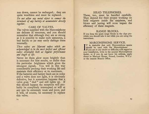 The following comprehensive instruction booklet for the V2 was produced by Marconi's Wireless Telegraphy Co, Ltd.: